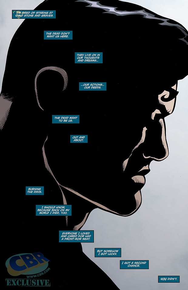 Tomasi ha già traghettato Superman dal New 52 alla nuova era con il crossover Superleague (poi rinominato The Final Days of Superman). Qui vediamo in azione il “nuovo” Superman in una serie di tavole in cinemascope.