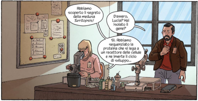 Come pure il fatto che per Agata, la “medusa immortale” del titolo, potendo tornare indietro nel suo sviluppo, il fattore tempo diventa meno importante che per le altre specie. E questo viene usato per non dare una visione necessariamente cronologica alla storia.
