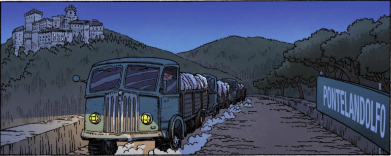 Questa scelta rallenta consapevolmente il ritmo, più di quanto facciano le splash page e le vignette orizzontali che sortiscono l’effetto opposto. La suddivisione orizzontale è solitamente in tre righe, tranne un paio di pagine con quattro vignette a tutta pagina in cui i passaggi sembrano più rapidi. Per il resto, anche unendole in modo diverso, ma sempre abbastanza classico, si trovano le sei vignette per tavola, divise in tre righe e due colonne.