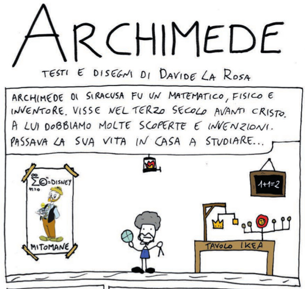 - gli interventi di Lercio, in particolare del matematico Stefano Pisani, che è anche caporedattore di MaddMaths! e ci racconta a modo suo gli episodi più famosi della vita di Archimede;