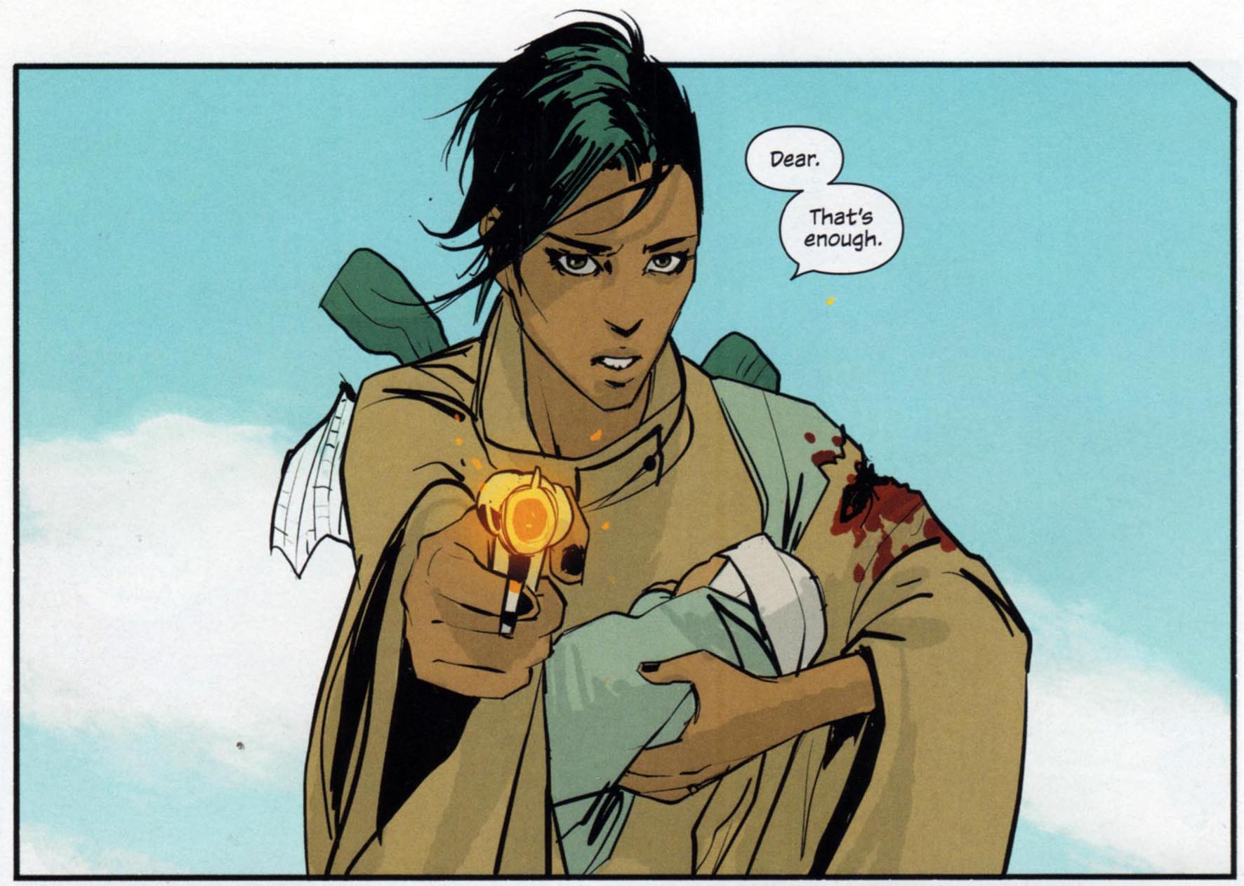 Prendiamo Saga, la serie di Brian K. Vaughan e Fiona Staples. Perché fantascienza? La risposta è ovvia. Se dobbiamo parlare delle gioie e i dolori di una famiglia multietnica, quale migliore esempio di una famiglia composta da genitori tra loro alieni?