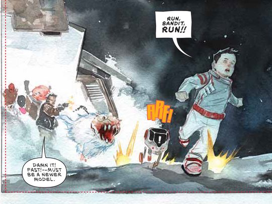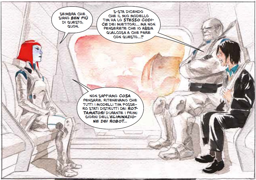 Ecco, se c’è una parola che ci parla di questo primo volume di Descender, quella è delicatezza. Non c’è una parola fuori posto, né una battuta troppo marcata, persino quando assistiamo all’amputazione di un arto. Persino Driller, che è un vero Killer, è un personaggio tratteggiato con leggerezza, in punta di penna.