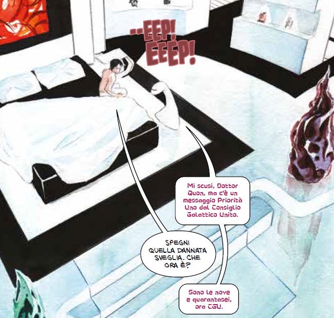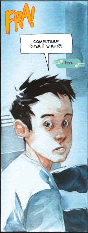 E ora torniamo a Descender. Sì, la fantascienza c’è tutta; il world (anzi universe) building c’è tutto, ma perché? Ci vogliono tante pagine per capire il perché, al punto che quasi ti sembra che non lo troverai mai.