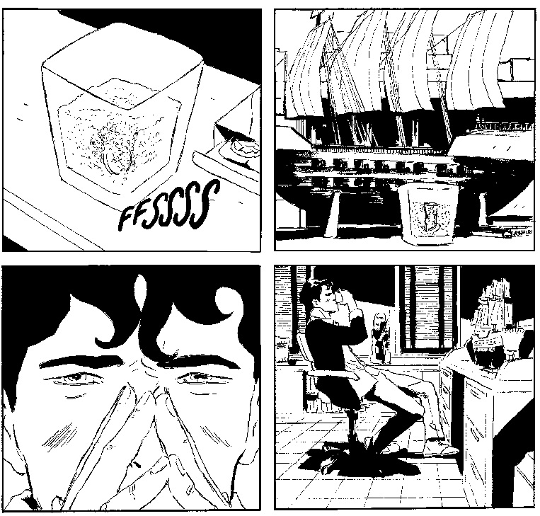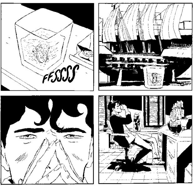 Il Tempo metafisico, nel senso puro e artistico del termine (evidenti le citazioni di De Chirico in copertina) con i suoi paradossi e le sue sovrapposizioni. Non c’è un solo istante in cui la storia si concede al lettore, che si muove spaesato tra vignette di difficile collocazione cronologica nonostante i rimandi temporali precisi (“un giovedì”). Ambrosini, grazie anche ai disegni di Werther Dell’Edera, che qui allude in maniera quasi pedissequa al maestro Micheluzzi, gioca con lo spaesamento del lettore facendolo attorcigliare dietro l’interpretazione di ciò che accade, senza mai tradirlo buttandola su un facile non-sense.