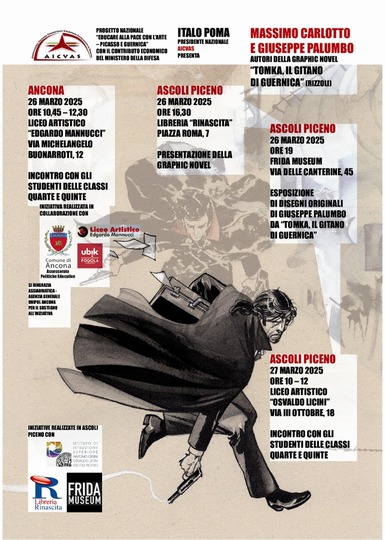 Nell’ambito del progetto Educare alla pace con l’arte – Picasso e Guernica, promosso dall’AICVAS, abbiamo avuto l’occasione di assistere alla presentazione della nuova edizione del volume Tomka, il gitano di Guernica, disegnato da Giuseppe Palumbo.