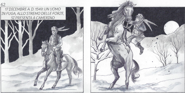 Il tratto, anche se piuttosto statico, fa percepire la storia come una serie di flash, in fondo come capita nella nostra mente, in cui non sempre si percepiscono le cose con continuità. Comunque, anche rispetto ai lavori precedenti, la tecnica appare migliorata. Nel tratto, nella gestione delle ombre, certamente supportata dall’acquerello, nella definizione e nell’accuratezza dei dettagli. Sono ancora non del tutto convincenti le scene più dinamiche: il cavallo imbizzarrito, anche se esce dalla vignetta, non dà senso di movimento e perde un po’ le proporzioni.