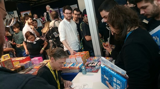 All’inizio mi sono trovato un po’ spiazzato dalla disposizione degli stand, mi immaginavo una situazione alla Teramo Heroes, dove gli ospiti sono lì a disposizione dei fan a rilasciare autografi e “disegnucci”, mi hanno spiegato che è proprio TH a essere anomala come manifestazione, in quanto è normale, e giusto, che l’autore gratifichi l’acquisto del suo volume con uno sketch, la nota dolente è che non ci si può permettere di acquistare tutto e te ne torni con l’amaro in bocca…