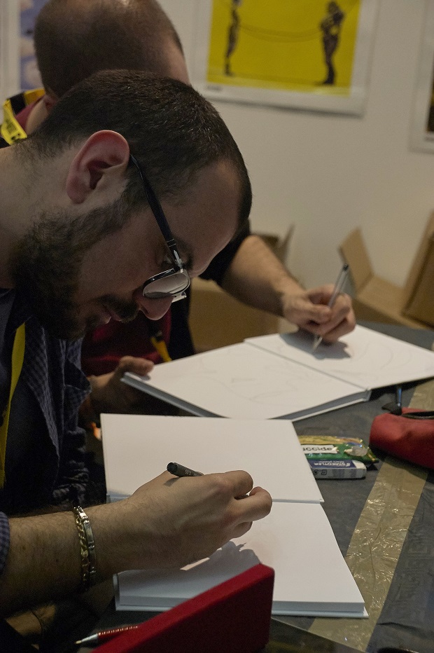 Superato questo piccolo disagio iniziale mi sono innamorato di questo evento. Una situazione molto tranquilla, rilassata, a misura di fan, dove puoi tranquillamente offrire un caffè o una birra all’autore del momento, assistere a interessanti conferenze, e non per ultimo guardare le mostre di alto livello allestite per l’occasione.