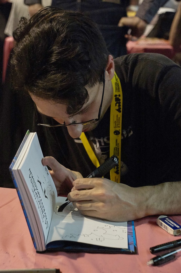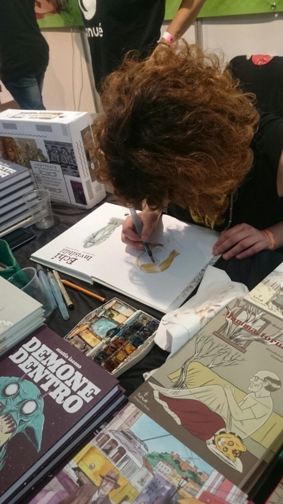 Per non dilungarmi troppo vi spoilero subito che è un festival figo e che siete dei mentecatti se ve lo siete persi. Il fumetto è il fulcro di tutto e tutto ruota intorno a lui: gli stand espositivi, le mostre, le conferenze, le masterclass, anche le chiacchiere tra amici. Gli espositori, che fossero fumetterie, scuole di fumetto o case editrici, erano numerosi e di vario genere per andare incontro ad ogni gusto; le mostre di Ortolani, Petruccioli, LRNZ e De Angelis erano ben curate e ho particolarmente apprezzato i Classici Illustrati ad opera di Rita Petruccioli; le conferenze strutturate bene e molto interessanti. Avrei voluto assistere a tutti gli incontri ma non avendo il dono dell’ubiquità, ed essendo una persona disorganizzata e che si lascia trasportare più dall’emozione che dal cervello, ero maggiormente concentrata a comprare fumetti/parlare con i fumettisti/attendere il turno per uno sketch senza guardare l’orologio. Mi soffermo però su un paio di incontri che potrebbero essere passati più in sordina per altri e che hanno attirato la mia attenzione. Nella giornata di sabato Ratigher e Gabriele di Fazio hanno annunciato la creazione di una loro casa editrice, la Flag Press, il cui progetto è quello di stampare i fumetti in un unico, grande formato 70×100 mentre sul retro la stessa storia sarà stampata in bianco e nero e in inglese. Proprio Ratigher è stato il primo ad essere pubblicato con la sua Teoria, pratica e ancora teoria ma sono già a bordo anche Manuele Fior, Ruppert e Mulot e Dash Shaw. Nella mattinata di domenica ho invece molto gradito l’incontro inerente la traduzione, soprattutto perché si è parlato di “arte invisibile”. Elena Cecchini ha sottolineato come nel mondo del fumetto (ma anche del cinema, ad esempio) i traduttori siano come fantasmi, ci sono ma nessuno li vede, se non quando commettono un errore e diventano bersagli di critiche. Erano presenti altre traduttrici come la Scrivo e la Lippi (che traducono principalmente manga), la Gobbato e la già citata Cecchini e l’editor Rizzo che ha mostrato al pubblico i passaggi e i problemi per la traduzione di semplici nomi. Il panel si è concluso con una richiesta unanime, ai siti che recensiscono fumetti, di citare anche i traduttori per riconoscere il valore del loro lavoro.