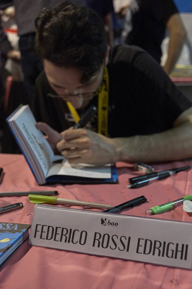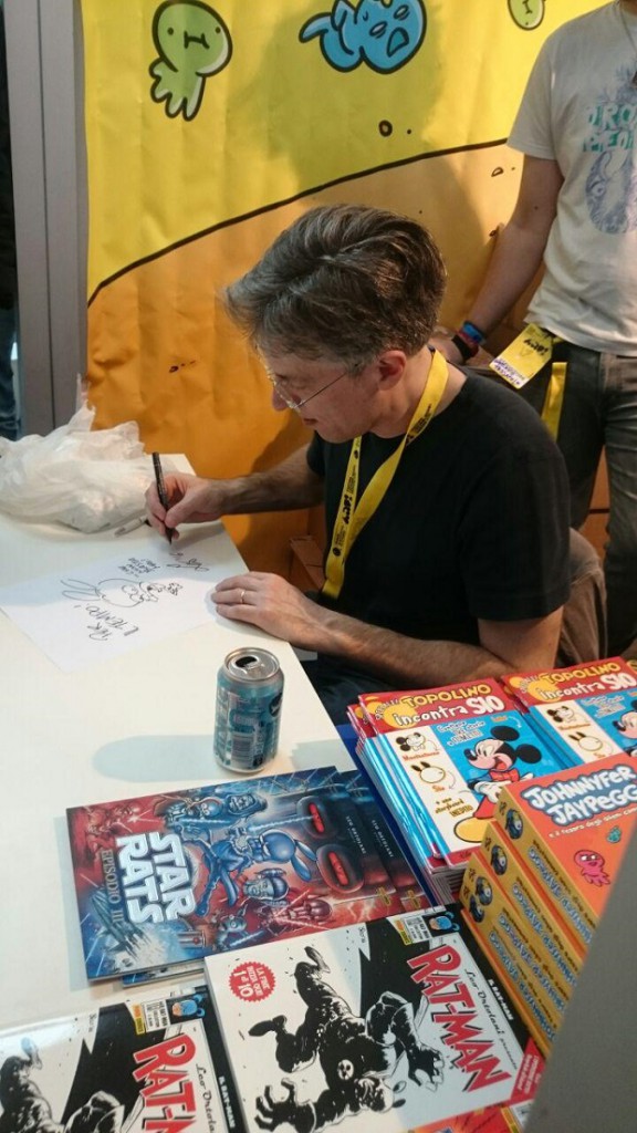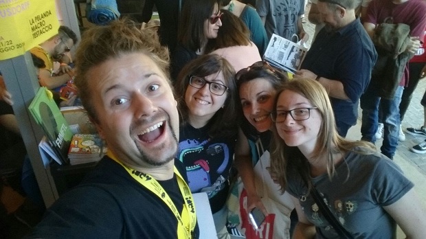 Il piacere più grande è stato ritrovare dal vivo gli autori che ho conosciuto virtualmente su Facebook e scoprirli delle belle persone, primo su tutti Mattia Surroz che oltre a essere un mostro di bravura è una persona davvero gentile e disponibile, per non parlare di Mauro Uzzeo che nonostante sia stato ingolfato tutto il tempo è comunque riuscito a considerarmi, e di Riccardo Torti che ha calato la maschera del “rompiballe” e si è scoperto un simpatico ragazzo; ho finalmente conosciuto dal vivo anche Luca Vanzella che ritroverò presto ad Ascoli Piceno il 4 giugno e ultimo, ma non di importanza, il piacere che ho avuto nel conoscere dal vivo Flavia Biondi, ora capisco da dove nascono quelle storie così empatiche e delicate.