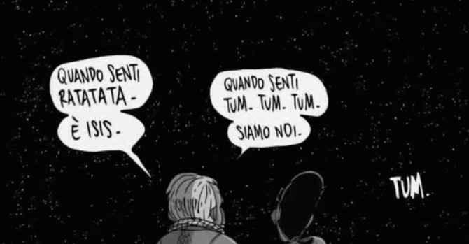 Per quei pochi che non sanno chi sia Zerocalcare ecco una breve sintesi: Zerocalcare, al secolo Michele Rech, nasce ad Arezzo, vive in Francia e si trasferisce a Rebibbia. Da adolescente (e anche oggi) frequenta i centri sociali e partecipa al G8 di Genova. Disegna fumetti per riviste indipendenti e non, fino a quando Makkox decide di puntare su di lui e finanzia il libro La profezia dell’armadillo. Lo scorso anno è uscito Dimentica il mio nome, saga famigliare e candidato al Premio Strega, e ad aprile è stato pubblicato Kobane Calling, reportage a fumetti che è il seguito ideale di quello edito su L’Internazionale, a gennaio 2015, sulla regione del Rojava. Se anche questo riassunto è troppo lungo ecco un riassunto in tre punti.