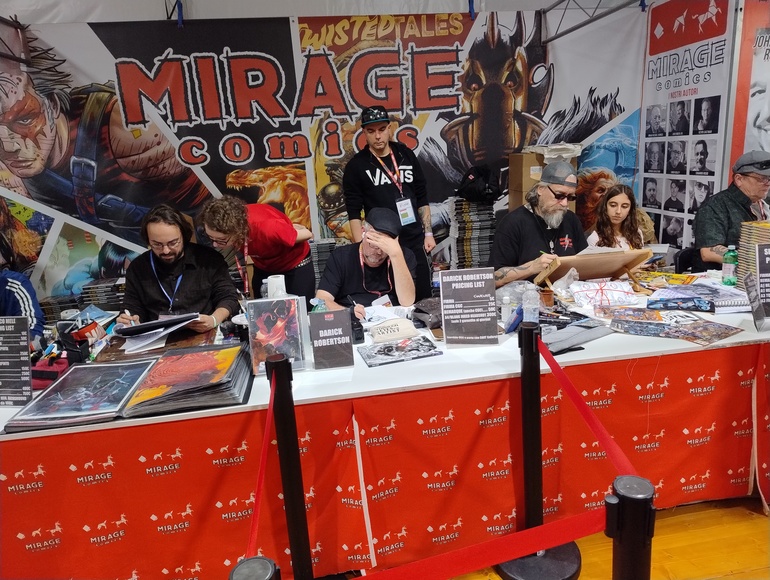 Mai come quest’anno ho visto star internazionali in giro per Lucca: oltre al maestro creatore grafico di Kenshiro, Mirage Comics aveva un quartetto d’oltreoceano composto da quattro mostri sacri come John Romita Junior, Darrick Robertson, Kevin Eastman e Simon Bisley.