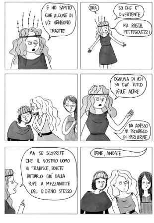 Il tratto semplice ma lineare e dinamico della Flandoli, che abbiamo apprezzato già in passato, è efficace ed equilibrato. Le espressioni facciali e gli atteggiamenti del corpo vengono espressi con pochi ma incisivi tratti. Lo stile della Flandoli ancora una volta può essere accostato sotto diversi punti di vista, a quello della Satrapi.