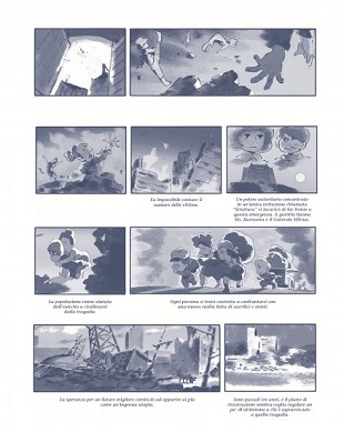 1. Sono assolutamente d’accordo con te, come dici la semplicità del tratto lascia trasparire un talento fuori dal comune, e smuove qualcosa dentro come solo i grandi sanno fare. L’invidia, quella buona, è inevitabile. Credo poi che tutto questo non sia visibile solo per chi conosce le opere di riferimento degli anni ’70 e ’80: è qualcosa di universale, che fa davvero tanto piacere rivedere in un media che amo e che però ha anche bisogno di aria fresca, ogni tanto.
