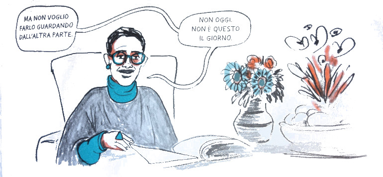 In questo lungo racconto si fa del graphic journalism, raccontando la vita e la malattia, connessa all’arte, delle sei donne che hanno dovuto affrontare il percorso curativo. E anche per questo in fondo il racconto è intriso di graphic medicine.