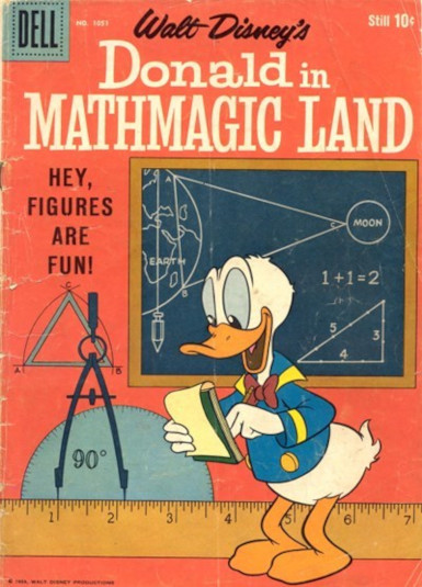 Questa è infatti una storia didascalica, più che divulgativa, in cui Paperino percorre il regno della MateMagica (così si chiamava in realtà il film – Codice Inducks W OS 1051-01).