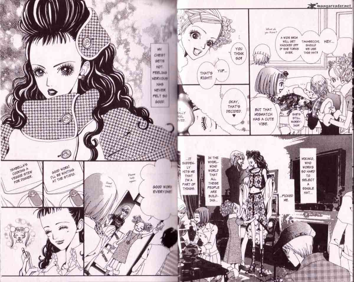 Ogni tavola è ricca e la Yazawa è maestra nel distribuire gli oggetti nello spazio, sia nella tavole a griglia convenzionale, sia nelle splash page, che in alcuni casi (come quando viene mostrato l’abito dell’ultima sfilata) lascia il lettore a contemplare tutti i dettagli inseriti, che diventano funzionali alla storia, non ci sono fronzoli. Un tratto super curato e accattivante che è fatto a posta per coinvolgere le ragazze.