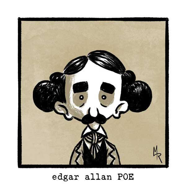 Si tratta della caricatura di Edgar Allan Poe disegnata da Marco Rocchi.