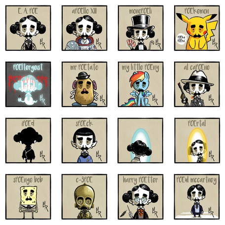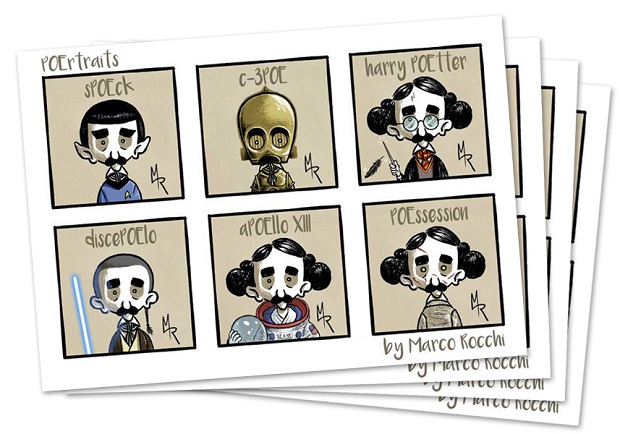 Una miscela originale e divertente tra caricature di Edgar Allan Poe, giochi di parole e cultura pop.
